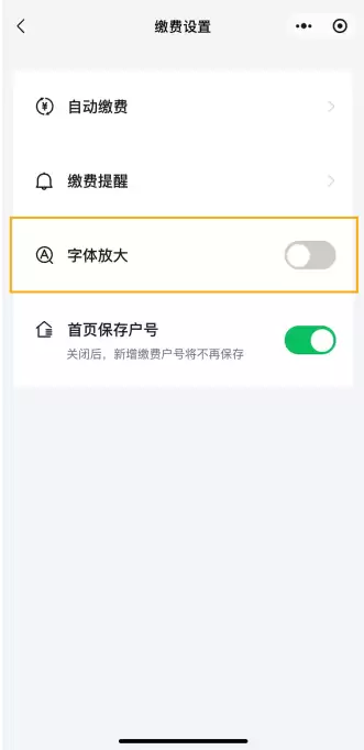 此外,生活缴费同步适配微信「关怀模式」,支持字体放大。附设置入口: