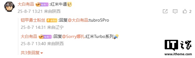 据爆料,这款新机已顺利开测 8500mAh± 电池,实验室向 9000mAh 靠拢,电池这块儿在做自研技术方案,争取在不影响电池循环寿命的前提下,尽可能做大,机身厚度全压到 8.5mm 以内。评论区有网友推测为 Turbo 5 系列。