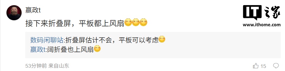 后续有用户在评论区询问:“是不是倒退取决于别家旗舰会不会跟”,博主回复道:“别家目前是子系旗舰线会上”;另一位用户则表示:“接下来折叠屏,平板都上风扇