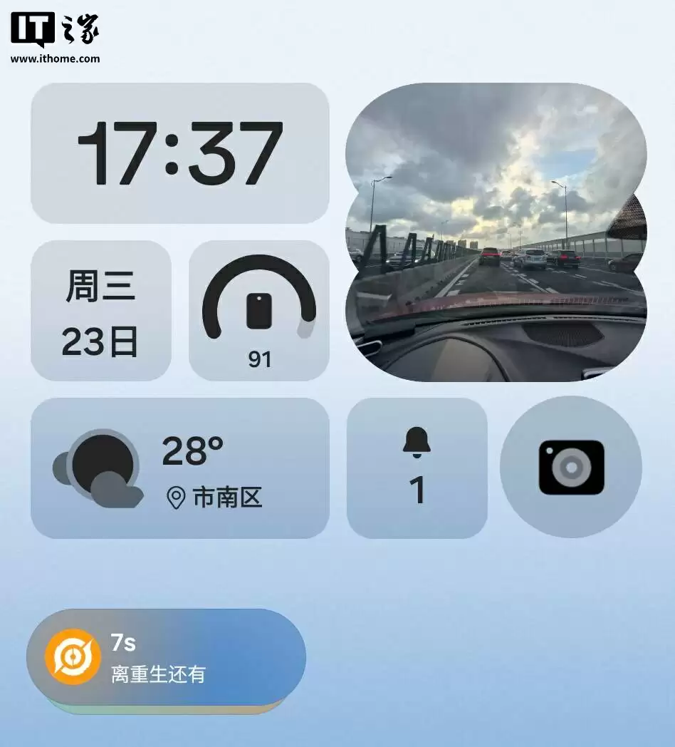 “实时窗”功能更是把效率拉满,网约车还有几分钟到、正在播放的歌曲、航班火车动态,这些信息在外屏上一目了然。