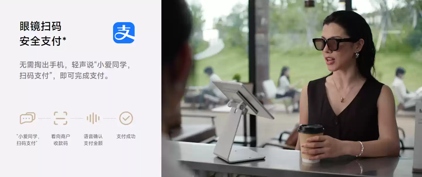 根据小米官方使用介绍,佩戴小米 AI 眼镜的用户无需掏出手机,轻声说“小爱同学,扫码支付”,即可完成支付。该功能支持支付宝商户收款码、个人收款码、订单码以及部分聚合码,如果扫码后涉及商品选择、信息录入等功能,则无法使用眼镜直接进行支付。