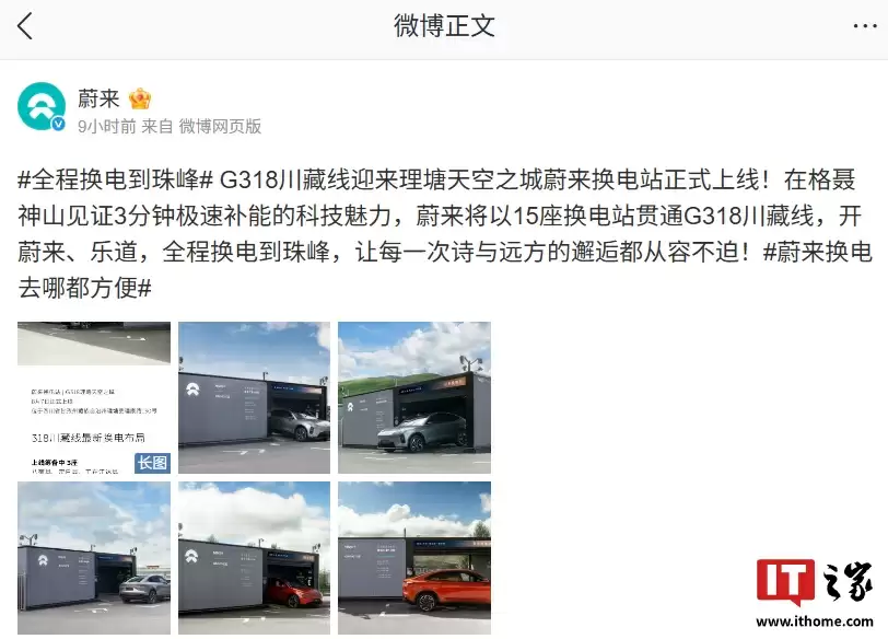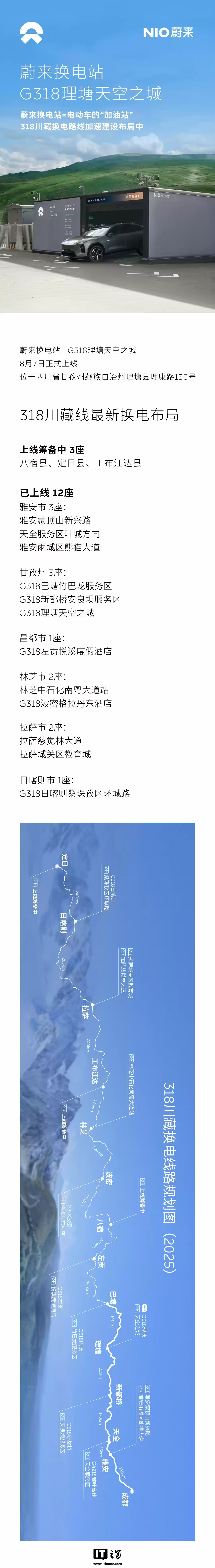 蔚来G318川藏线再添换电站,理塘天空之城实现全程换电直达珠峰
