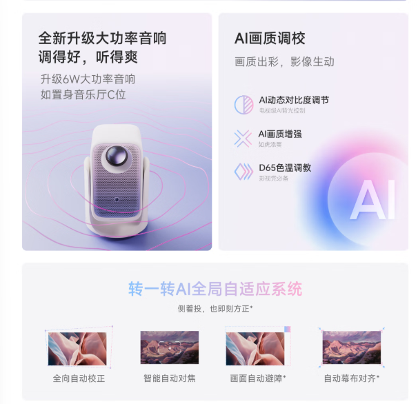 799元起!小明Q6 Neo投影仪首发245CVIA亮度+可旋转云台