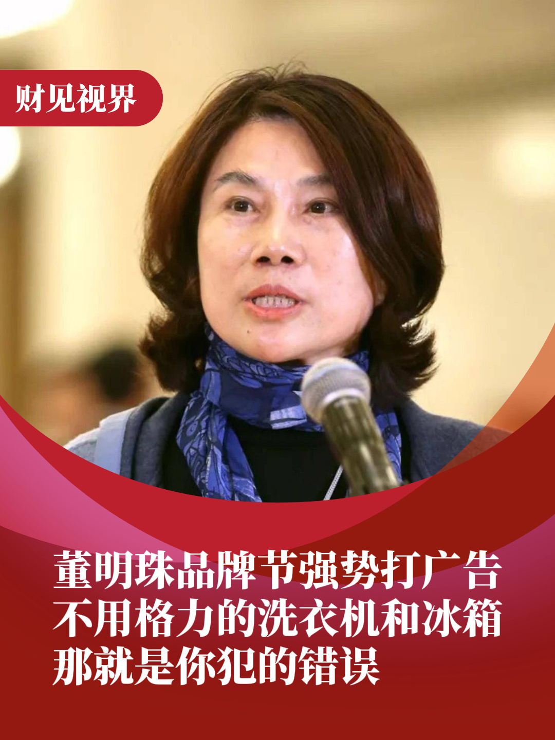 董明珠今日在中国品牌节介绍了格力的产品和价值观。董明珠还向台下观众喊话:不用格力的洗衣机和冰箱,那就是你犯的错误。“我那冰箱可以节能,同时,蔬菜水果摆在里面二十天,依然像从地里刚刚摘出来一样的新鲜,营养都保留了起来”。