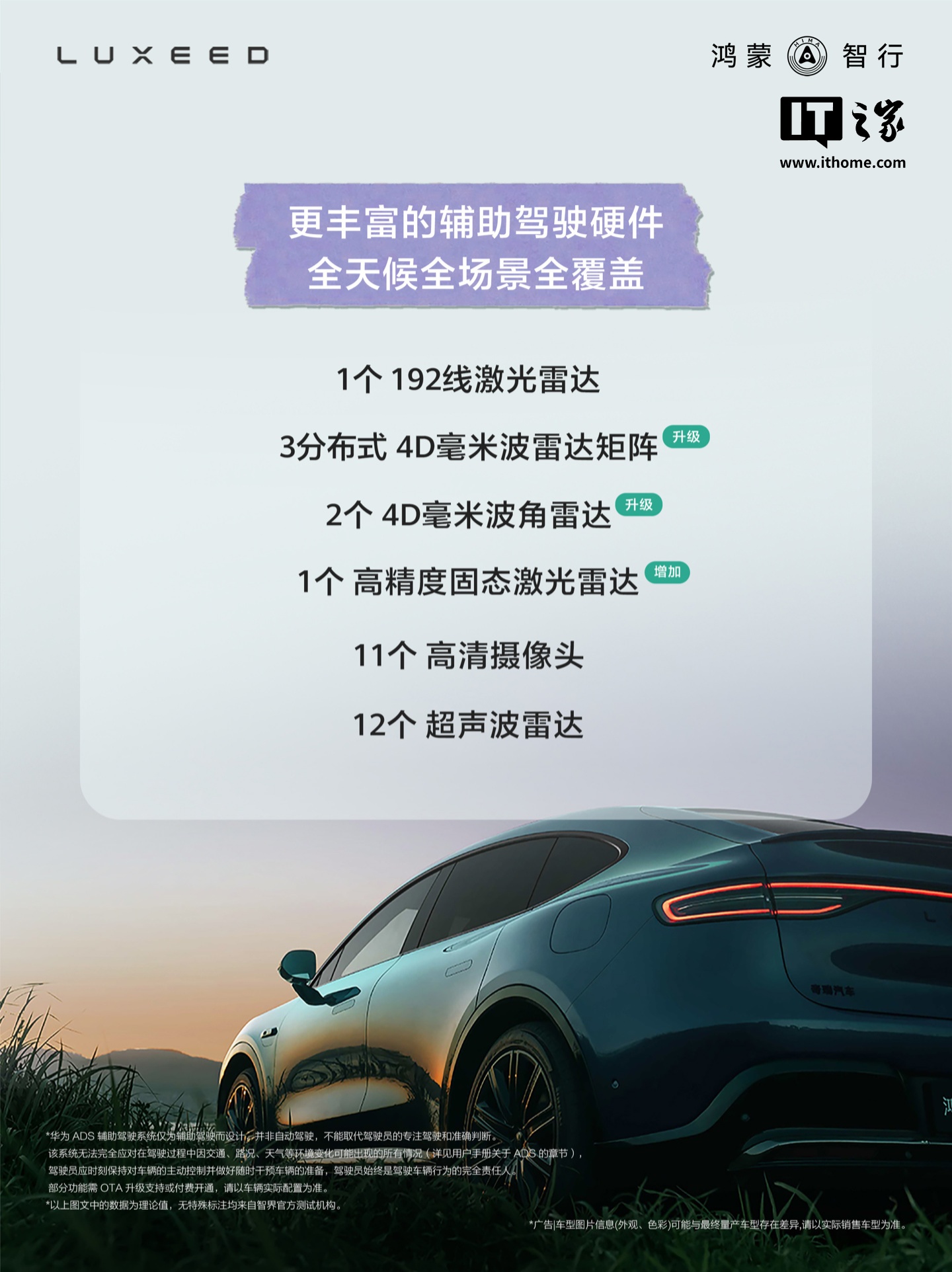 附鸿蒙智行智界 R7 轿跑 SUV 辅助驾驶硬件升级情况如下: