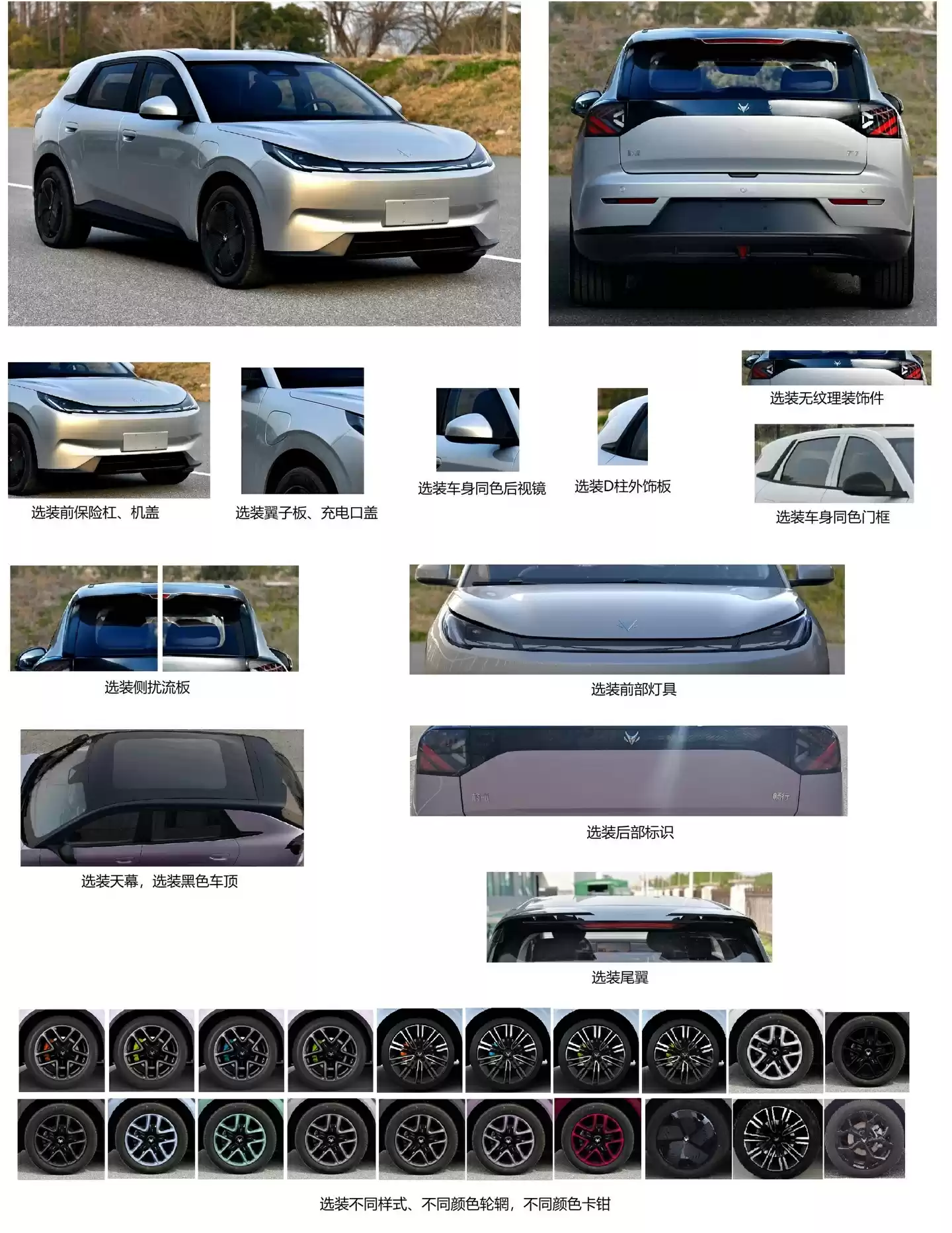 注意到,申报新车共四个版本,整备质量 1415kg、1435kg、1450kg,尺寸 4337×1860×1572mm,轴距 2770mm,均采用 215/55R17、215/55R18 轮胎。