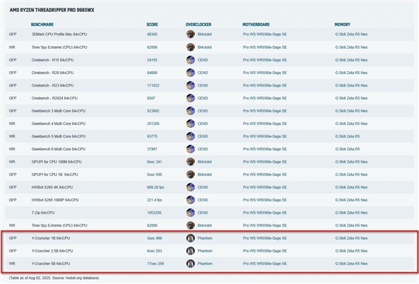 具体来说,韩国极限超频高手Phantom使用Threadripper PRO 9985WX和ASUS Pro WS WRX90E-SAGE SE 主板,将芝奇的内存超频到了DDR5-8400,而且时序也只有CL38-50-50,此频率下稳定通过了MemtestPro压力测试,可以说地狱级难度挑战了。