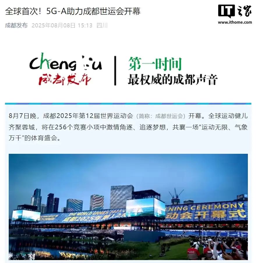 2025成都世运会实现5G-A全覆盖,万人开幕式手机直播零卡顿