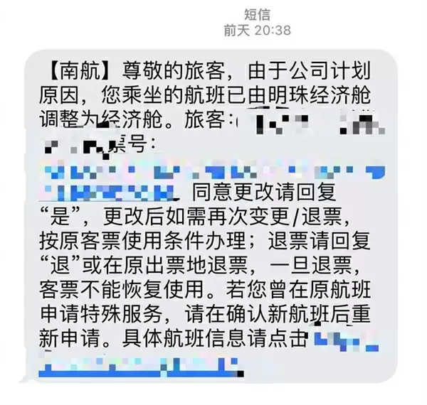 南航升舱后被强制降舱?乘客遭遇"两老一小"出行困境