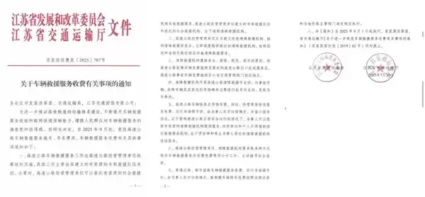 从2025年9月1日开始,凡是在江苏省高速公路范围内出现故障或发生事故的车辆,所需的拖车和吊车救援服务将全部免费提供。