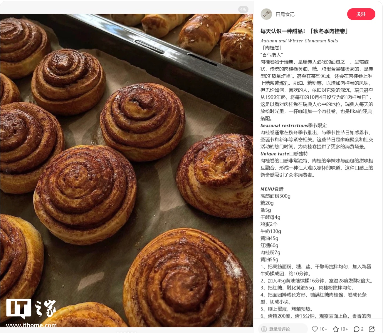注:“Cinnamon Bun”是一种在北欧和北美流行的甜点,也叫肉桂面包,是用卷起的面团包裹肉桂糖馅料烘焙而成,常配以糖霜或糖衣。