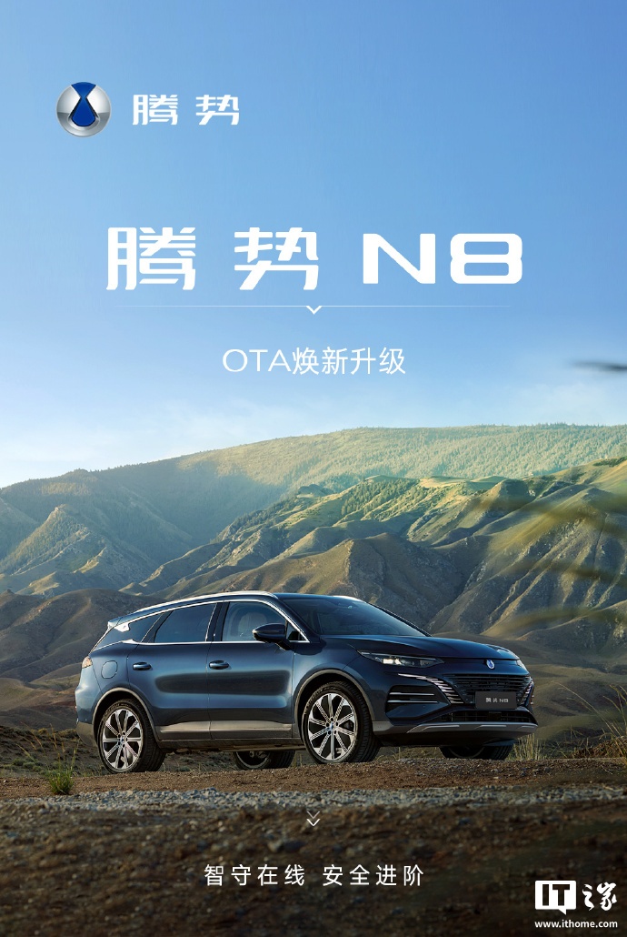 8 月 10 日消息,比亚迪腾势 N8 迎来 OTA 升级,本次升级包括新增哨兵模式、车手互联和千里眼功能等。另外还有多项优化升级,升级时长预计约 73 分钟。