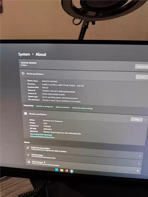 系统安装的是Windows 11 IoT Enterprise,这是专为嵌入式系统和物联网设备设计的操作系统。
