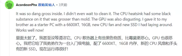 最终,这位Reddit用户将主机升级为RX 6600 XT显卡、16GB内存和新的固态硬盘,并更换了CPU风扇后,将其送给了自己的兄弟。