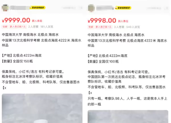 闲鱼惊现北极海水9999元/瓶,卖家称科考队员带回