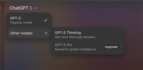 现在,你打开GPT的界面,在模型选择的下拉菜单里,你基本只能看到GPT-5选项。