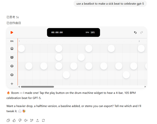 就那个奥特曼在发布会上展示的做音乐的例子,如果你的GPT-5被降智了,你是复刻不出来的,感兴趣的差友可以去试试。。
