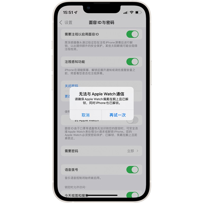 随着 9 月 24 日 iPhone 13 系列的发售,很多人已经在第一时间拿到了新设备,但随之而来的也有一些小 Bug。众多用户反馈在 iPhone 13 系列上无法开启“使用 Apple Watch 解锁” 功能,并会显示 “无法与 Apple Watch 通信”的弹窗。在目前常态化疫情防控下,该功能的缺失致使在要求佩戴口罩的公共场合需要频繁手动输入密码,给使用造成很大的不便。