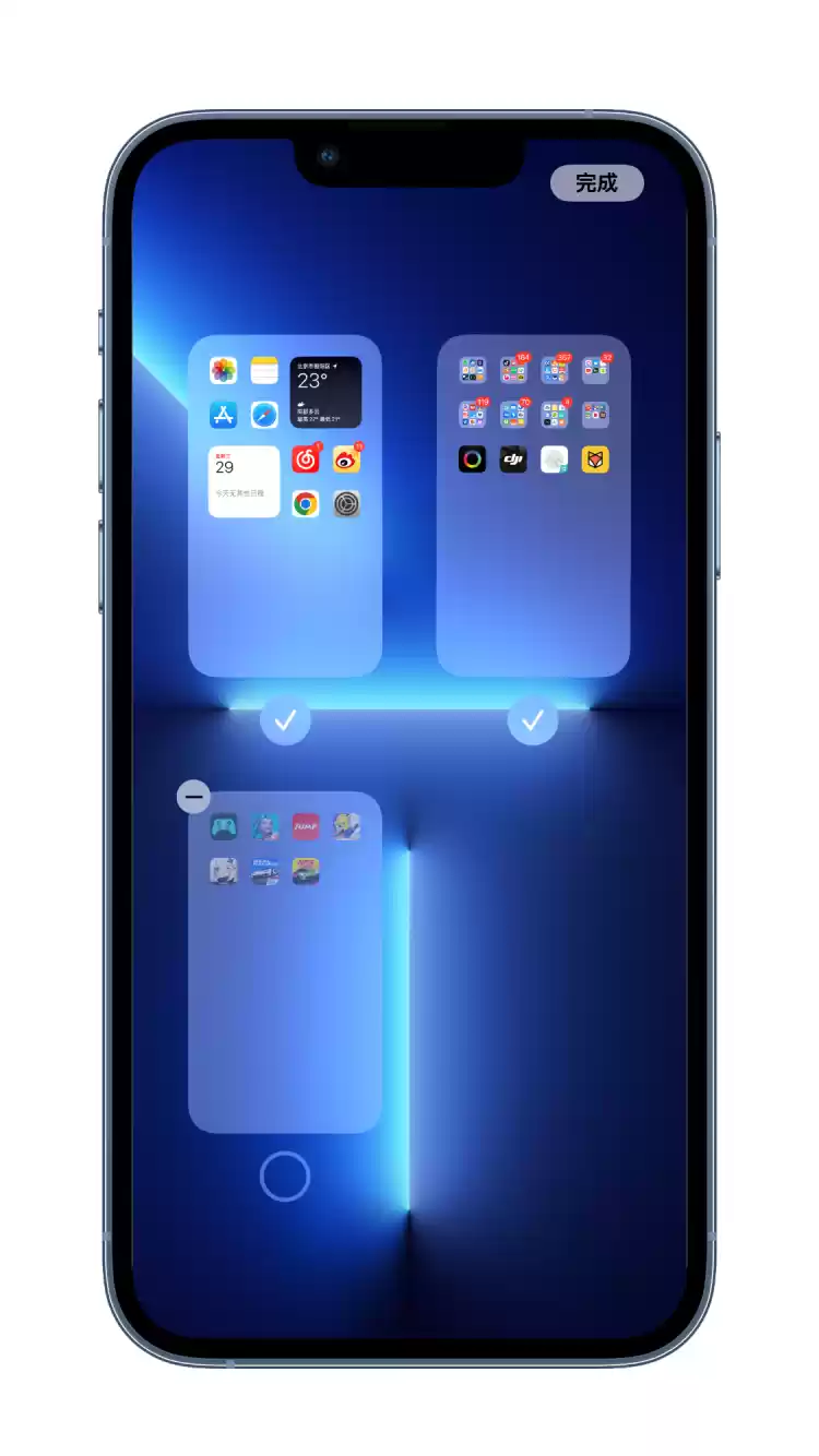 而且在 iOS 14 上,苹果在桌面上还加入了一个耐人寻味的功能,那就是隐藏桌面页面。