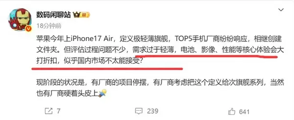 但国内厂商在评估超薄旗舰过程中发现不少问题,因机身过于轻薄,电池、影像、性能等核心体验都会大打折扣,国内消费者能不能接受这样的产品要打个问号。