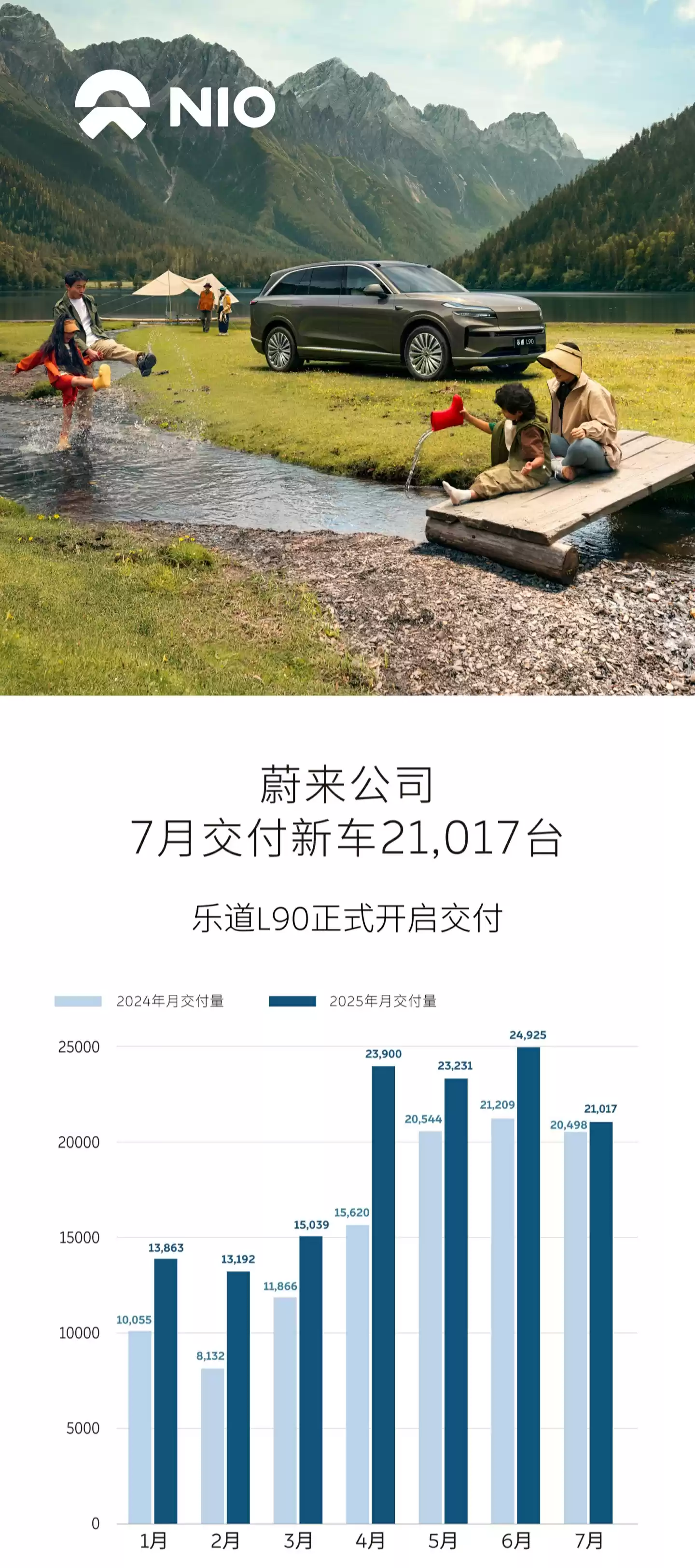 销售数据显示:2025年7月蔚来集团共交付新车21,017台,1-7月累计销量同比增长25.2%。具体来看,蔚来品牌交付12,675台,乐道品牌贡献5,976台,firefly萤火虫品牌交付2,366台。截至当前,集团累计交付量已达806,731台,其中蔚来737,923台,乐道58,599台,firefly萤火虫10,209台。