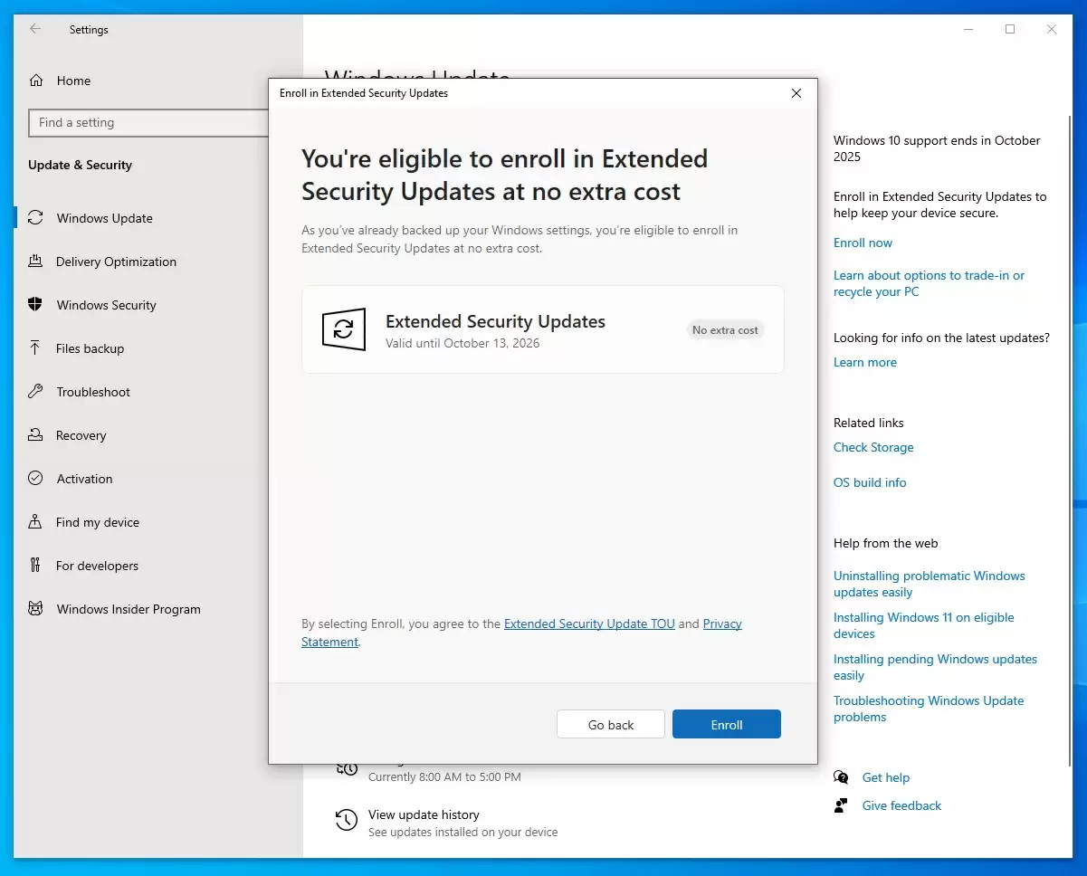按照微软原先规划,Windows 10的官方支持将于2025年10月14日正式截止。用户可通过三种方式延长一年支持期限:支付30美元费用、将设备设置同步至OneDrive云端,或使用1000点Microsoft Rewards积分进行兑换。值得注意的是,系统支持将在2026年全面终止。