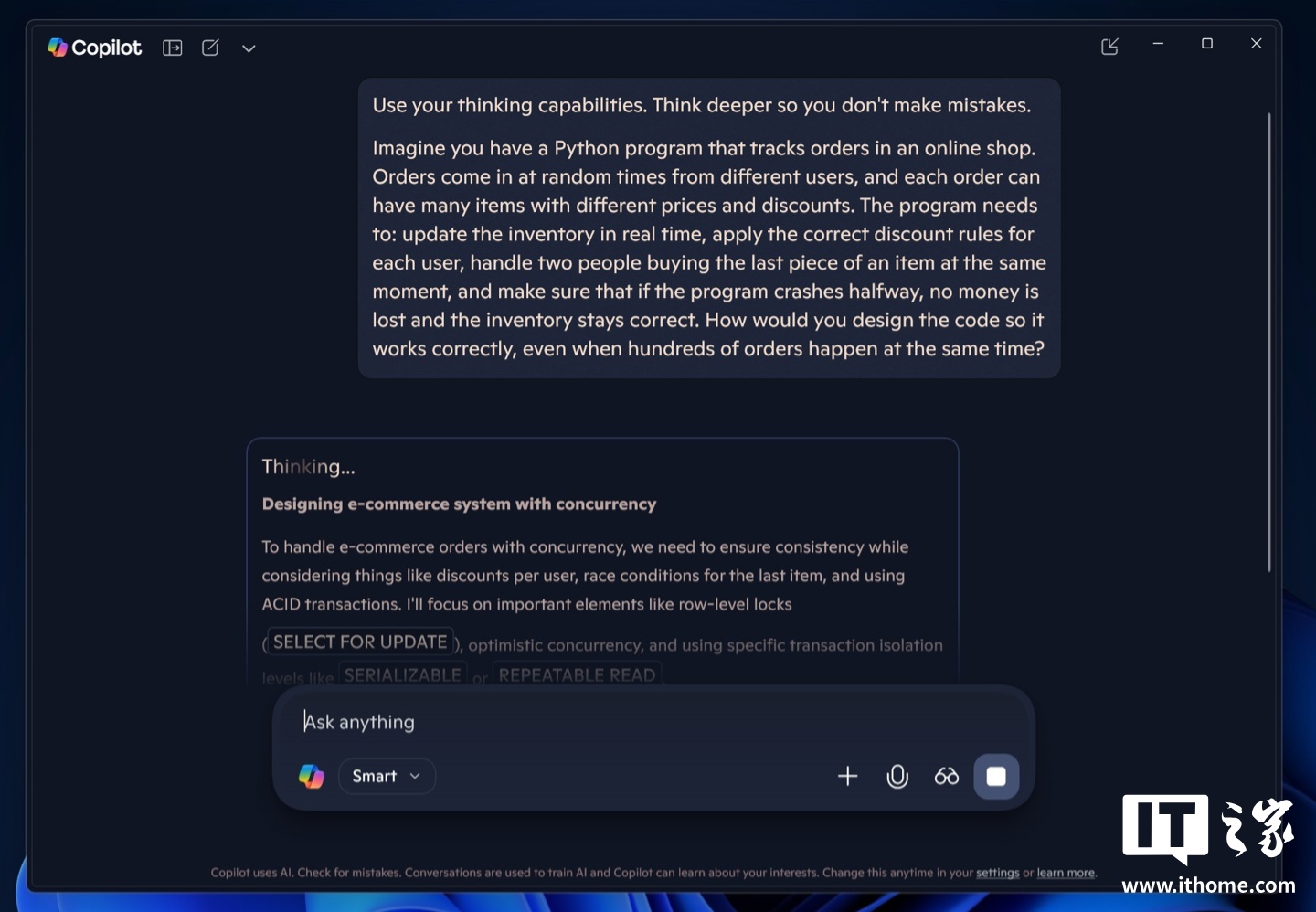 8 月 11 日消息,微软面向 Windows 11(以及 Windows 10)的 Copilot 应用程序现在支持由 GPT-5 驱动的智能模式。这一功能自 8 月 7 日开始逐步推出,目前在美国及其他地区已广泛可用。