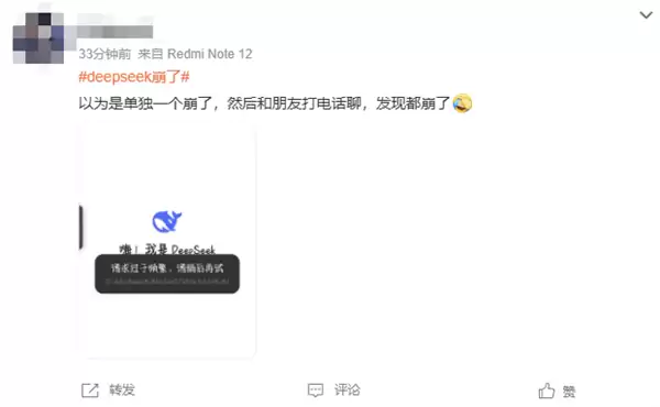 许多网友也通过微博话题#DeepSeek崩了#反馈服务异常。