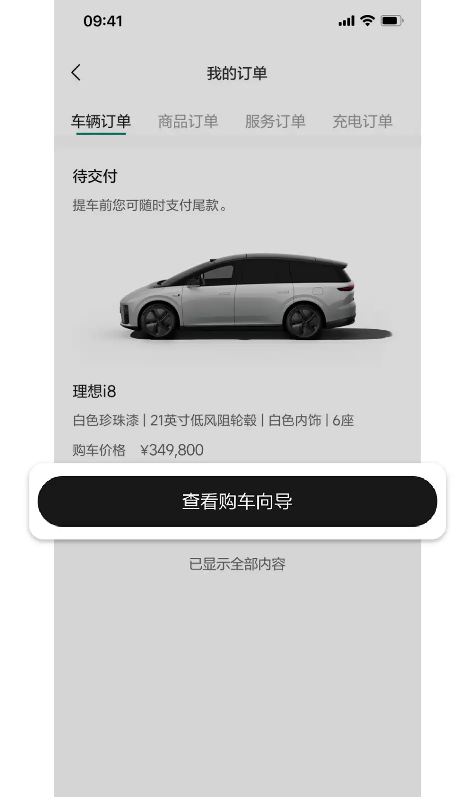 在「车辆订单」页面找到「理想 i8 的订单」并点击订单卡片。