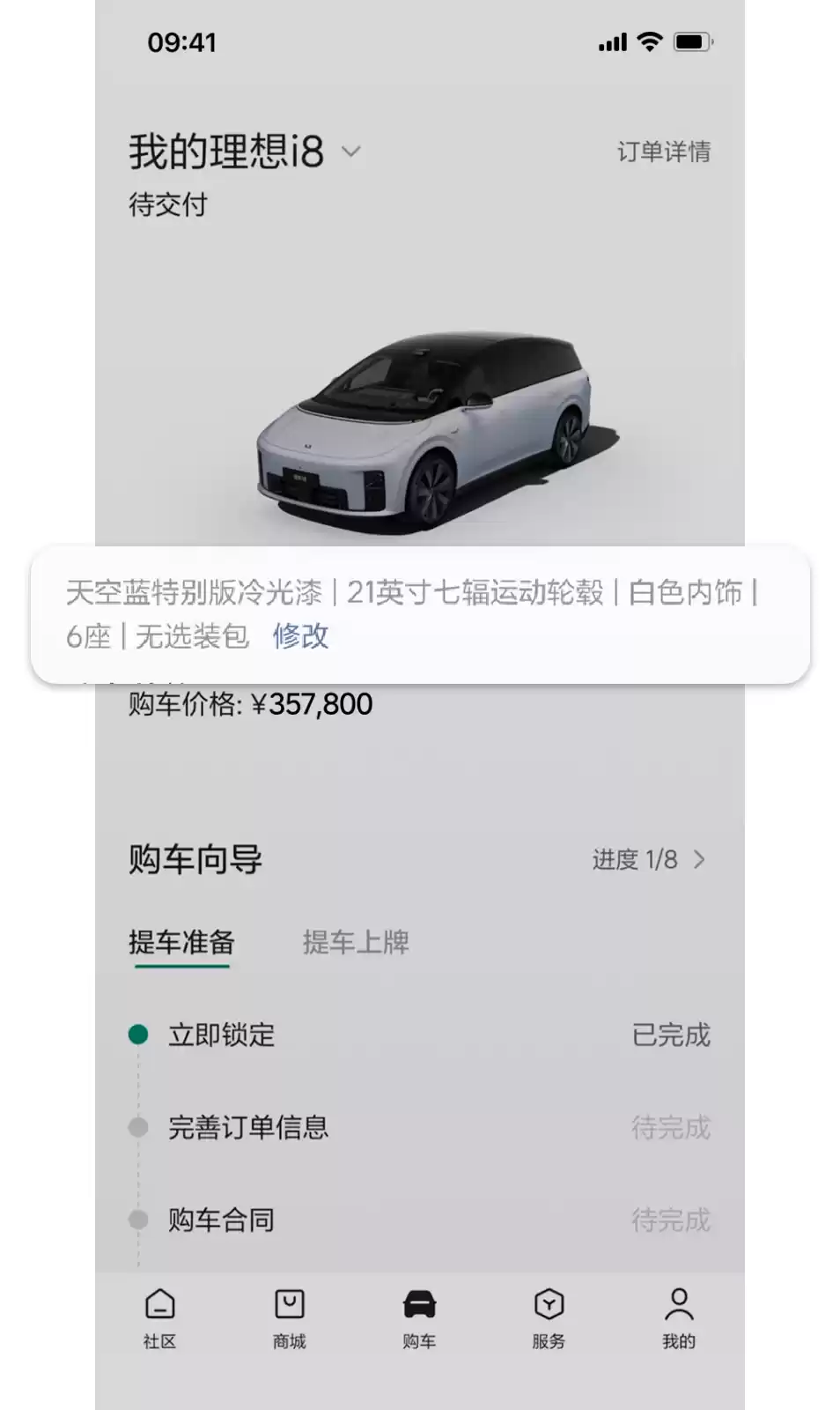 我们已经为已定购理想 i8 各车型版本的用户生成了新的配置和价格,您须在 8 月 10 日 24:00 前通过理想汽车 App 确认配置。具体可参考如下操作路径: