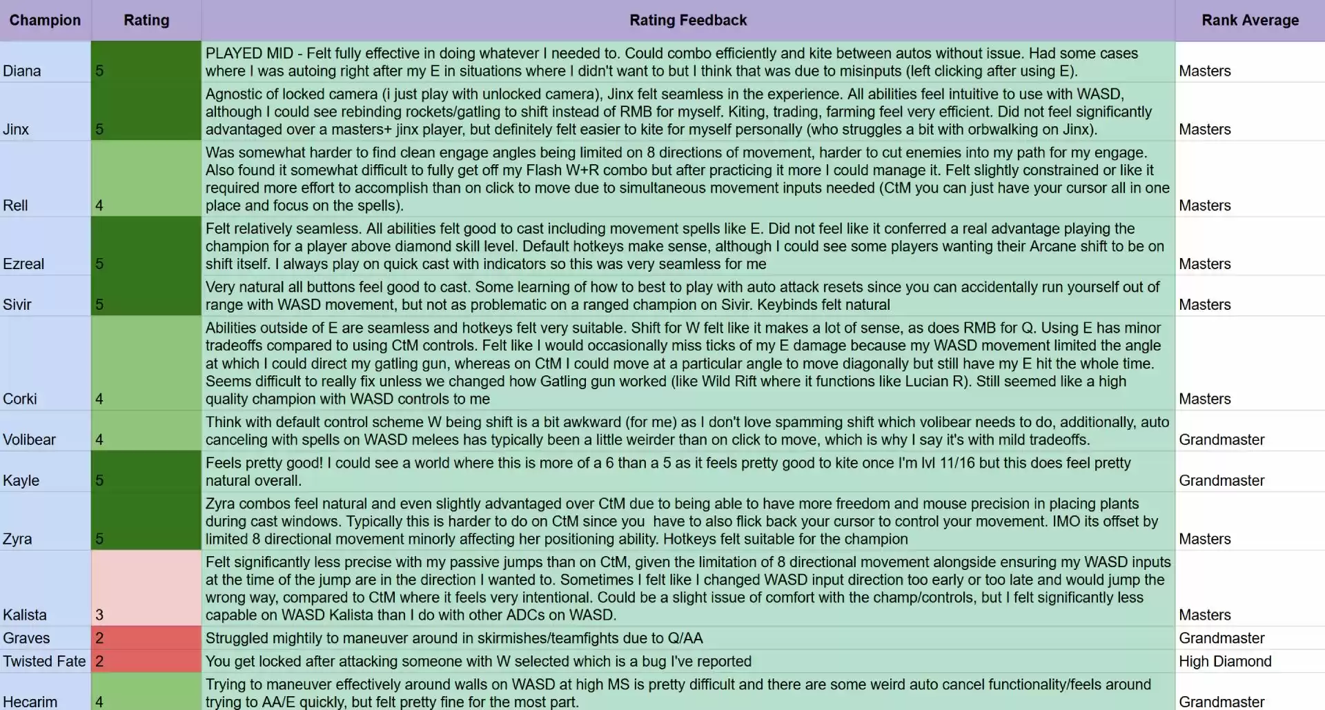 为了尽量减少 Bug 和意外交互,拳头表示这项功能将在 PBE(注:测试服)阶段进行持续调整,之后将逐步在非排位模式上线,最后才会全面进入全球正式服(包含排位赛和职业赛)。拳头还表示他们会持续打磨,在鼠标和 WASD 操作之间没有明显优势差距后才放进排位赛里。