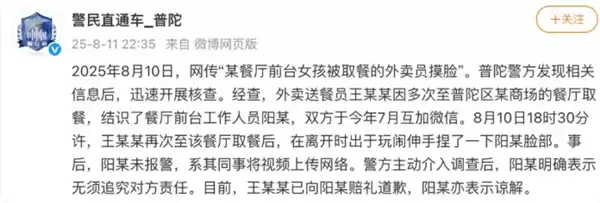 外卖员捏脸事件通报:7月相识玩闹引发争议