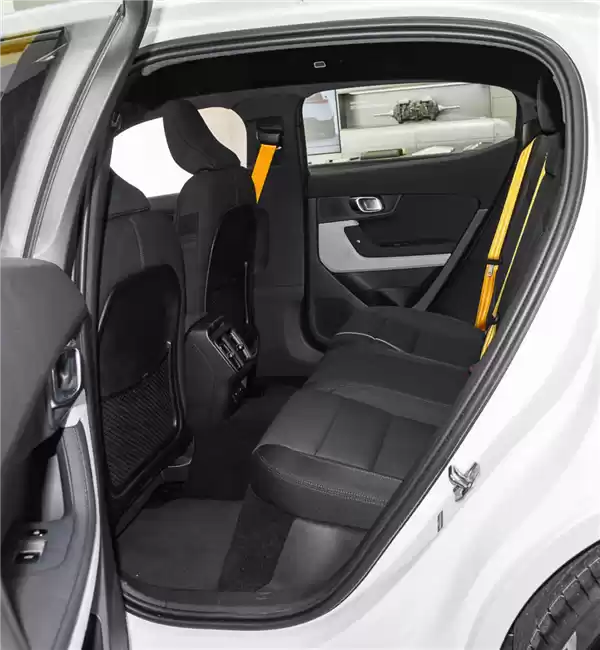 极星2主打的也是运动属性和沃尔沃那套豪华简约的设计,比如用上欧林斯的避震,环保的内饰材料,黄色骚气的安全带等等。但这车实际上是个油改电,它用的是沃尔沃、领克油车在用的CMA平台,前驱,后排中间有个巨大的隆起。