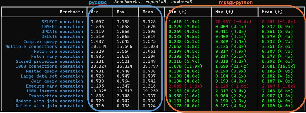 微软发布mssql-python驱动,性能较pyodbc提升16.5倍