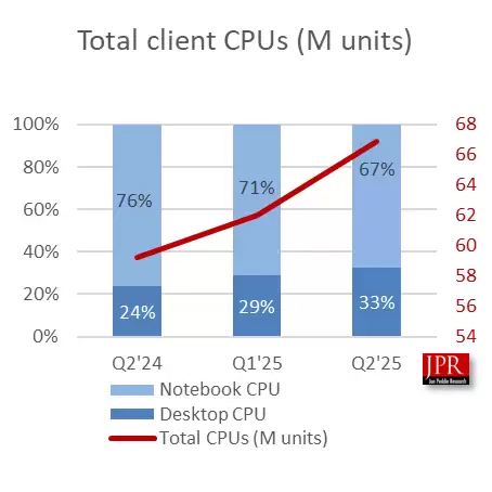 8 月 13 日消息,市场研究机构 Jon Peddie Research(JPR)今日公布的最新数据显示,全球客户端 CPU 市场已连续两个季度实现增长。