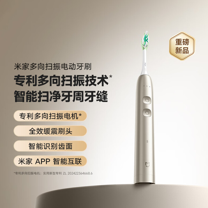 京东米家小米多向扫振电动牙刷 专利多向扫振技术 智能扫净牙周牙缝七夕情人节礼物 金色 待发布直达链接从商品页面获悉,这款电动牙刷采用了小米专利多向扫振技术,配备全效缓震刷头,支持智能识别齿面,支持智能扫净牙周牙缝。除此之外,小米暂未公布其他详细信息。