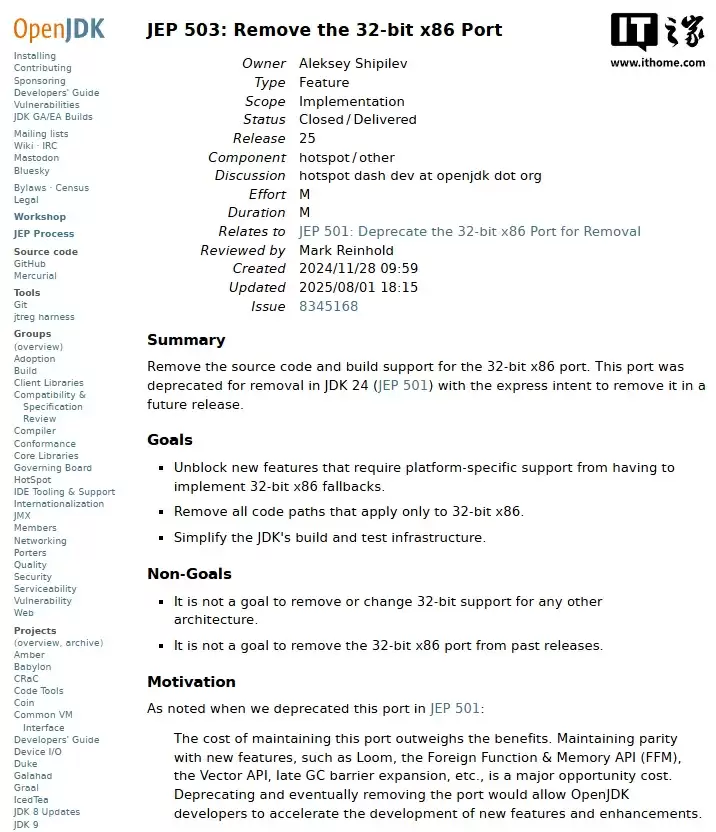 Java 25正式版9月16日发布,弃用32位x86架构