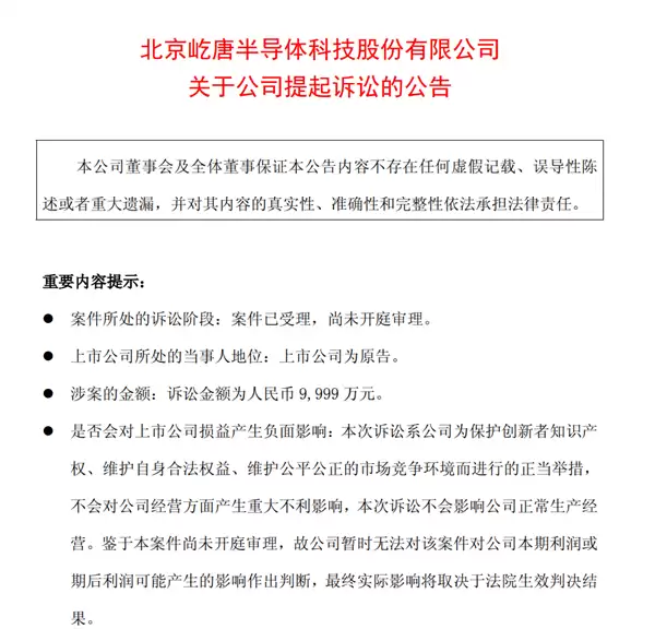 8月13日晚间,国内半导体设备企业屹唐股份发布公告称,公司已正式向北京知识产权法院提起诉讼,目前案件已获受理,正在等待开庭审理。