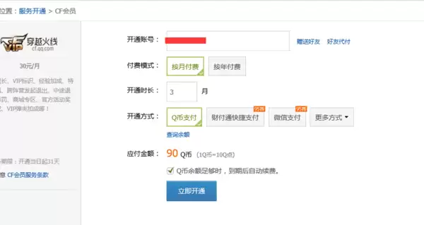 首先访问腾讯充值中心官网:https://pay.qq.com/,登录您的个人账号。进入服务开通页面后,选择CF会员服务。在开通界面中,根据需求选择会员时长和支付方式,完成支付流程即可。支付成功后,CF会员服务将立即生效。