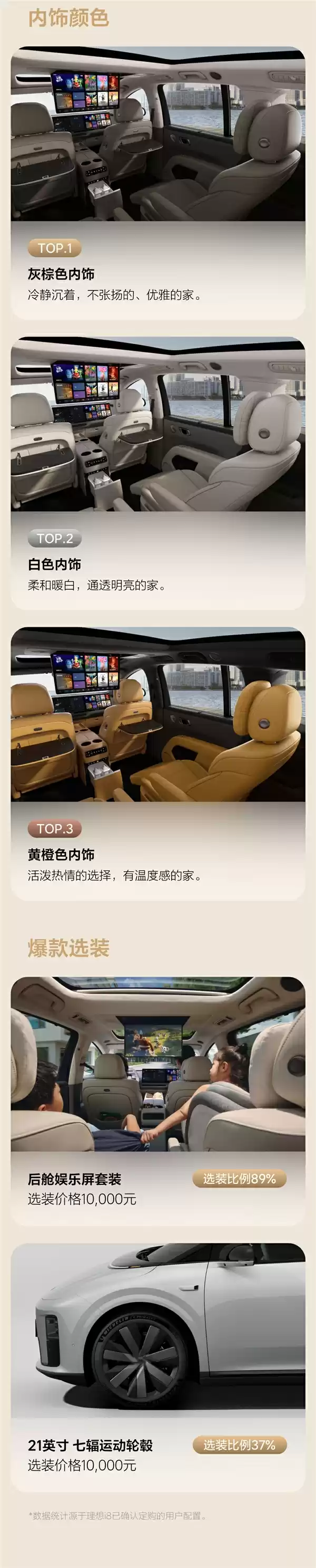 此外,理想汽车还公布了理想i8的热门配置数据。