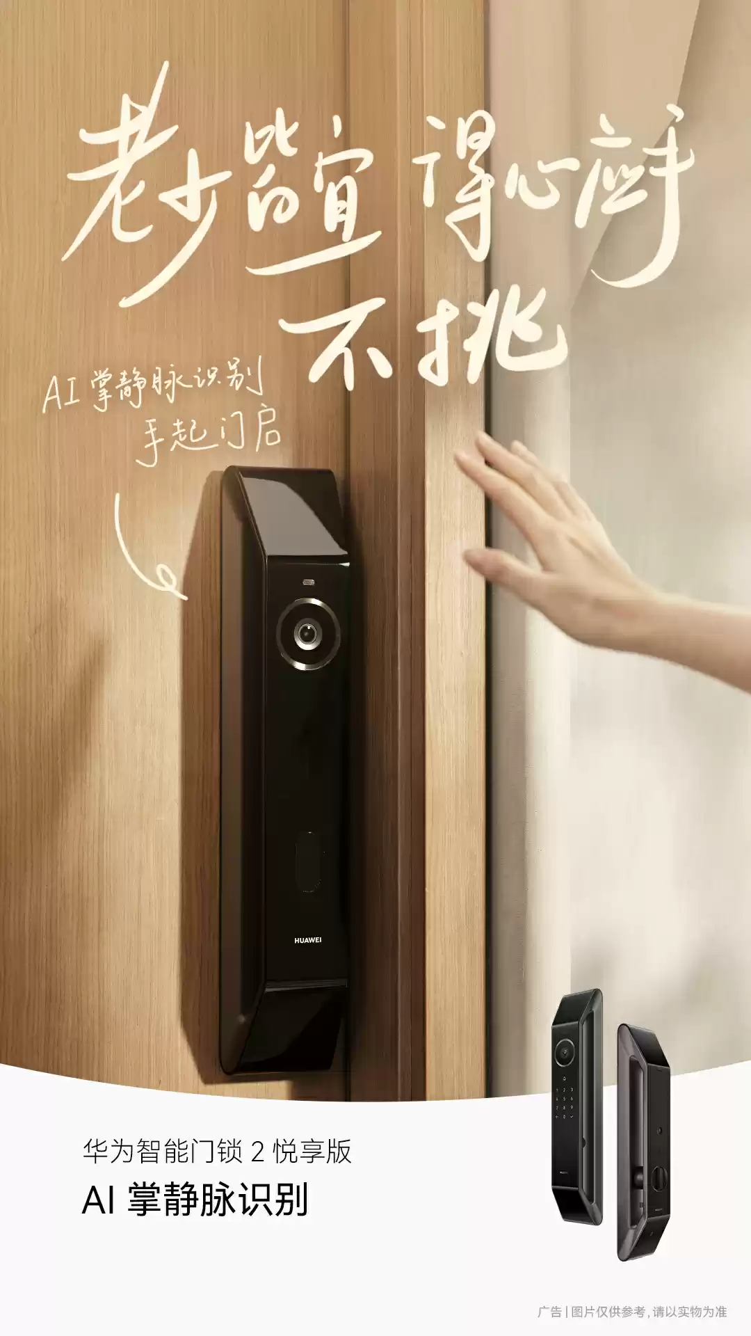 华为智能门锁2悦享版上市:AI掌静脉+高清猫眼,1799元起