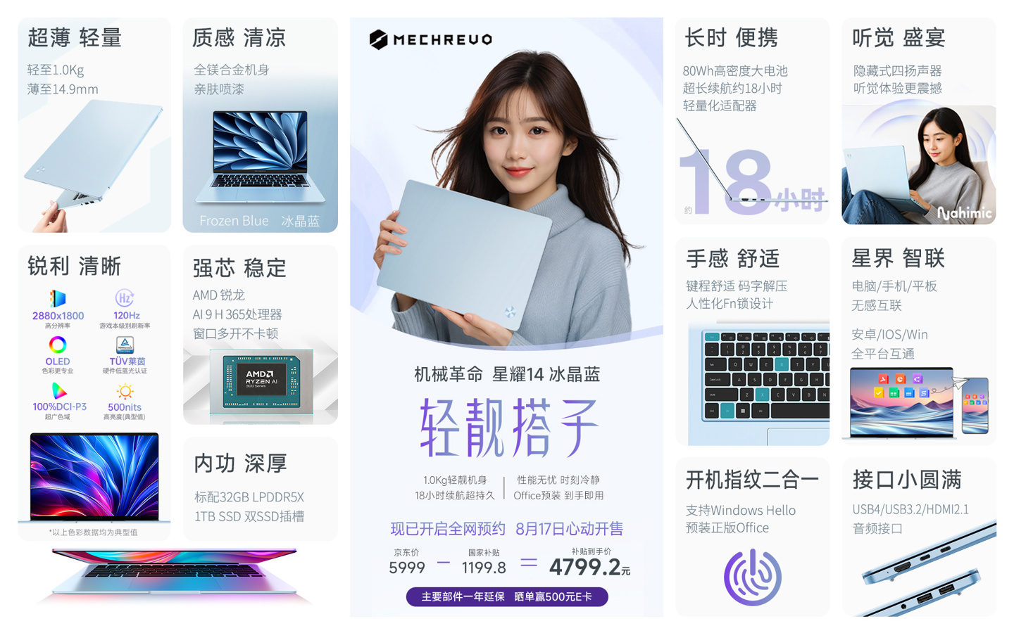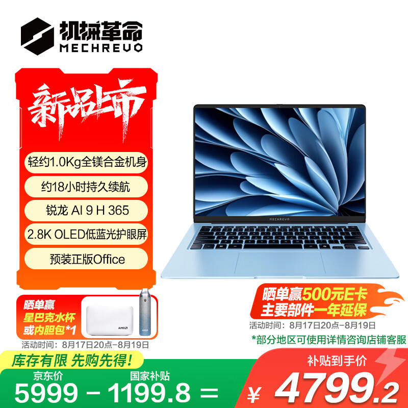 机械革命星耀14冰晶蓝首发:AMD AI9处理器+2.8K OLED屏,补贴价4799元