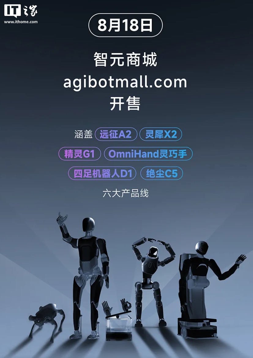 8 月 18 日消息,智元机器人今日宣布,其全系产品正式开售,包含六大机器人产品线。