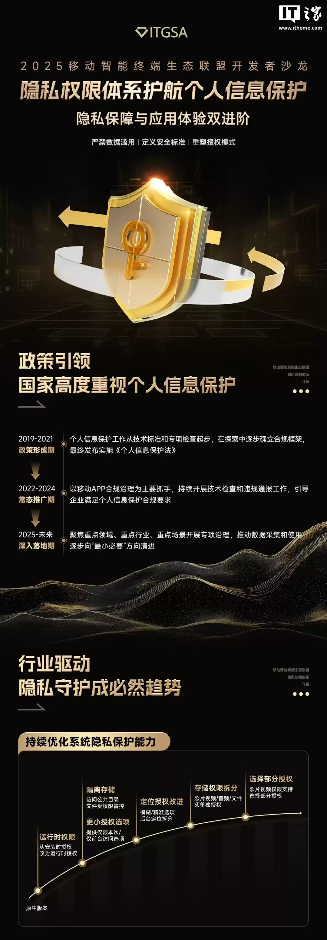 8 月 18 日消息,移动智能终端生态联盟今日发布“一图读懂 2025 金标联盟开发者沙龙”,主要介绍了联盟的发展、隐私权限体系的进展、Android 16 系统的适配情况,以及厂商推送能力的升级