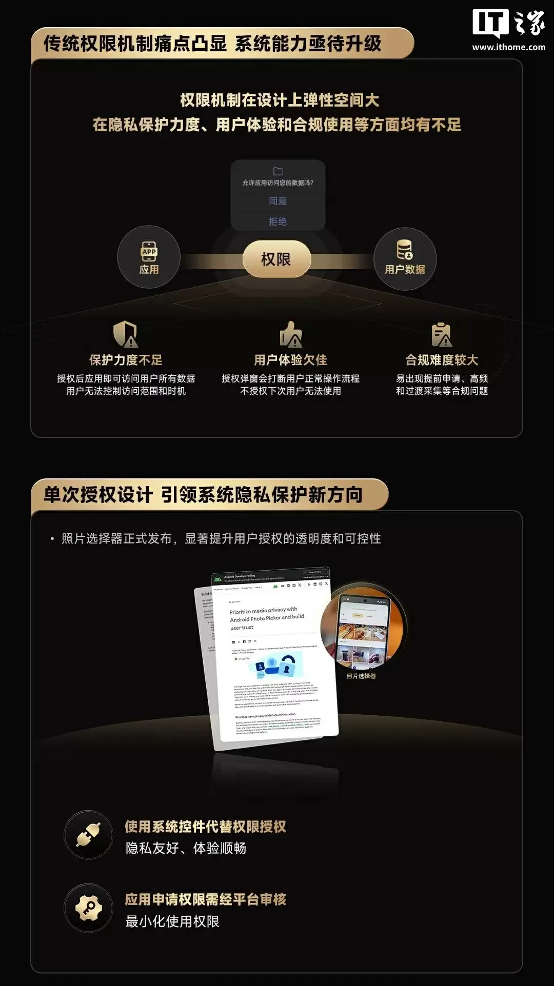 8 月 18 日消息,据移动智能终端生态联盟消息,在行业的驱动下,隐私守护已成必然趋势,其将持续优化系统隐私保护能力、升级系统权限能力,计划使用系统控件代替权限授权,同时应用申请权限需经平台审核,