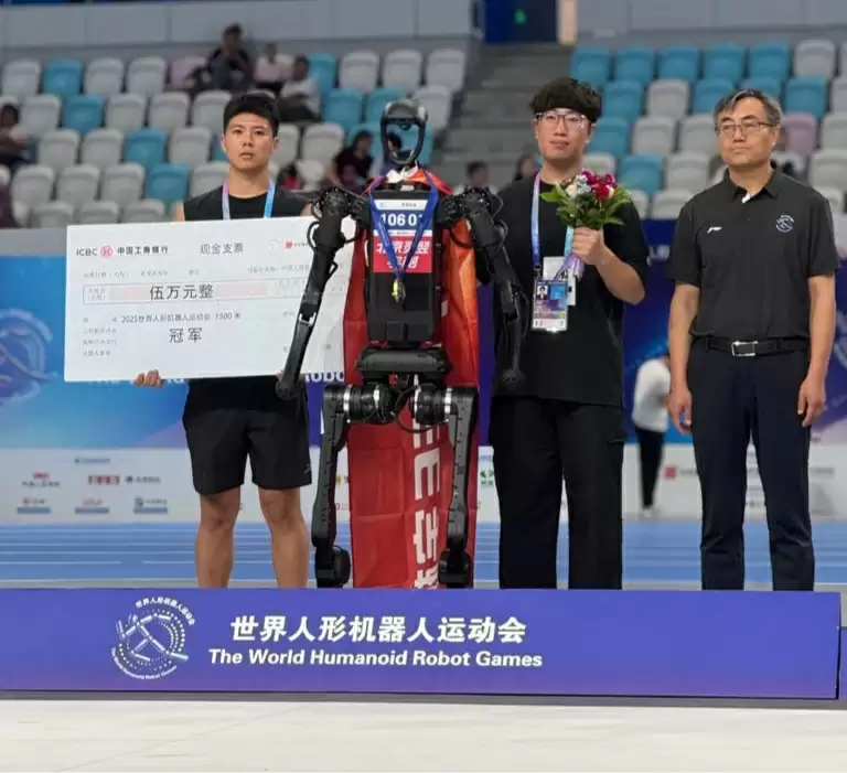 《2025 世界人形机器人运动会:宇树拿下 1500 米田径决赛第 1 组第一名》