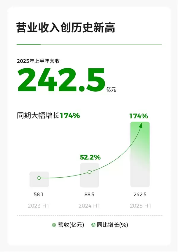 2025年上半年,零跑汽车收入为242.5亿元,同比增长174.0%。