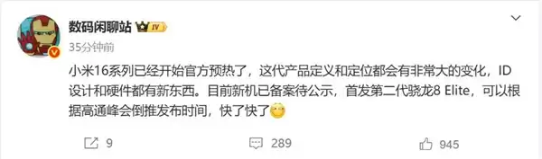 8月18日最新爆料显示,知名数码博主数码闲聊站透露,小米16系列将迎来重大升级迭代。该系列不仅在产品定义和定位上有显著调整,更将带来全新的ID设计和硬件创新。据悉,新机目前已完成备案但仍未公示,确定将全球首发骁龙8 Elite 2芯片。结合高通发布会日程,这款旗舰产品亮相日期已呼之欲出。