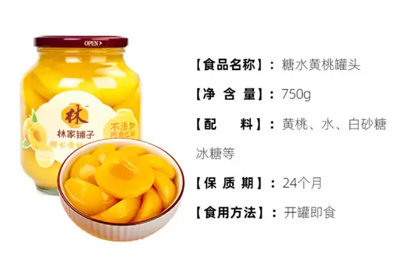 配料纯净:黄桃果肉、饮用水、白砂糖、冰糖等简单原料。
