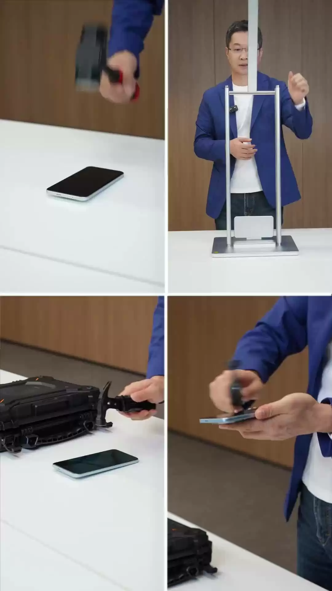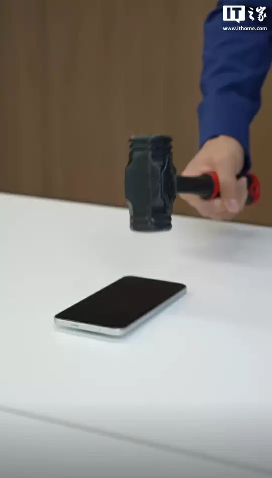 值得注意的是,在产品发布会前夕,小米集团总裁卢伟冰通过微博发布了一段全新暴力测试视频。视频中,他分别使用小锤、中锤和大锤对Redmi Note 15 Pro+的屏幕进行了力度逐级增大的敲击测试,最后还通过大摆锤完成了1.8米高度的模拟跌落测试,测试后手机依然保持完好。